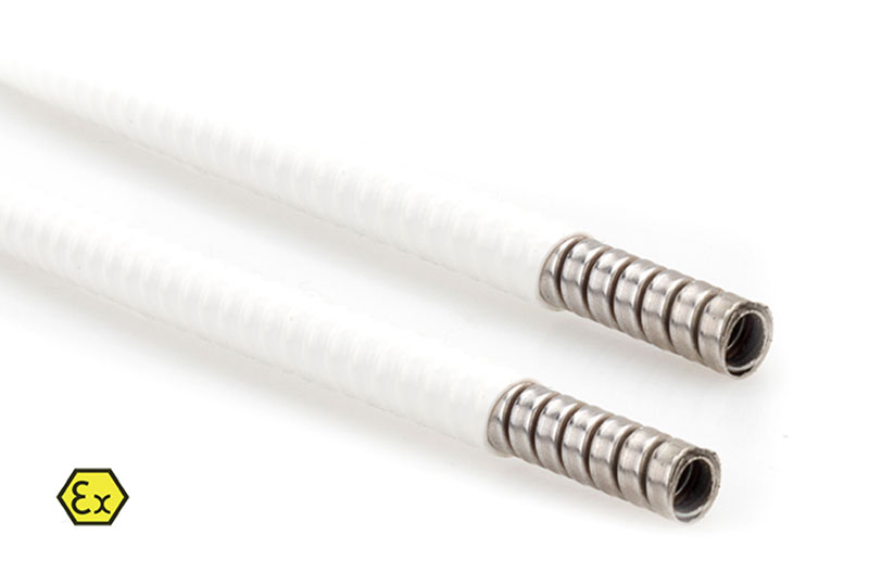 針對(duì)潛在爆炸環(huán)境用的設(shè)備及保護(hù)系統(tǒng)之線纜保護(hù)(海上平臺(tái),石化設(shè)備,礦山,面粉廠和其他可能存在易爆氣體的場(chǎng)所使用的設(shè)備和保護(hù)系統(tǒng)),特別推薦使用此款通過(guò) ATEX認(rèn)證軟管。