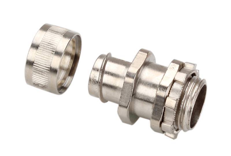 金屬軟管接頭 - AZ05 系列, 為四件式部件設計的可旋轉型直接頭, 在配電線路的轉接或終結點, 連接金屬保護管與接線盒或電氣箱, 使線路延續(xù)并保護傳輸安全。 接頭本體材質(zhì)為鋅合金, 符合 RoHS 環(huán)保規(guī)定, 一端鎖入金屬軟管, 加上外襯套與金屬軟管連接; 另一端外牙的螺牙系統(tǒng)則有 M 牙, G 牙及 PG 牙可供選擇, 可以太陽型螺帽固定在薄壁型接線盒或攻牙的接口上。 本系列金屬接頭結構簡潔, 組裝方便快速, 可旋轉式設計便于施工安裝, 同時仍保有高抗拉的特性, 也可外加接地片達到接地功能。 建議搭配 PAG13, PAG23, PAS13 及 PAS23 系列無披覆或含披覆的金屬軟管使用。